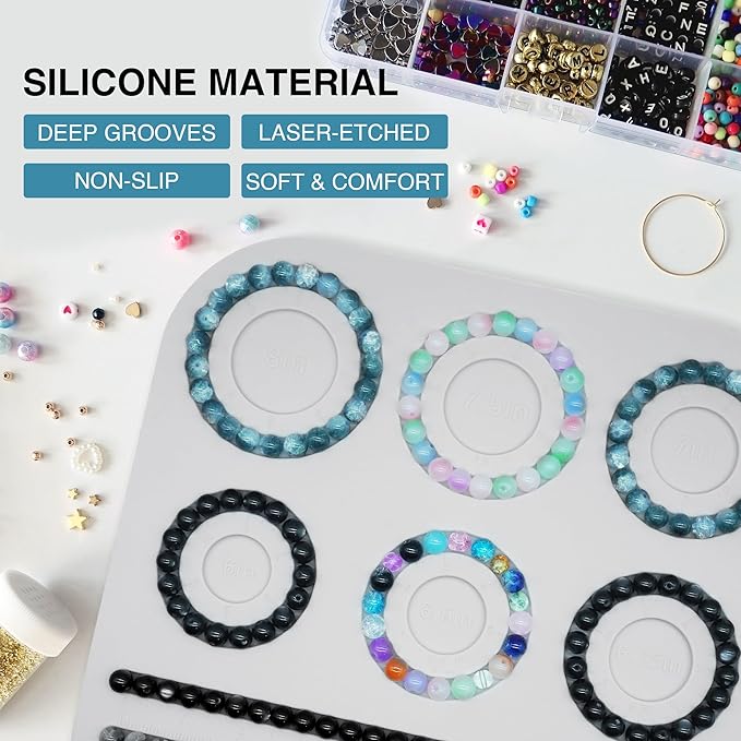 • 💚【Quality Silicone Beading Board】The Foldable Portable silicone beading board is made of natural silicone, which is of high quality and sturdy, suitable for making bracelets in different sizes. The size of 11.02*11.02*0.2″. Not easy to break and deform, smooth to touch can protect your beads from scratching. It can be washed to keep the beaded board clean and hygienic.