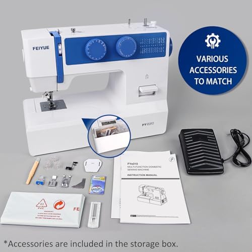 FEIYUE FYe310 Sewing Machine with Foot Pedal, Full Size, Heavy Duty & Portable, 6 Bobbins & 5 Included Sewing Feet