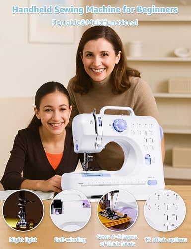 Sewing Machine for Beginners – Portable Electric Hand Mini Sewing Machine 12 Built-In Stitches with 2 Speed Foot Pedal Small Handheld Maquina de Coser Blue